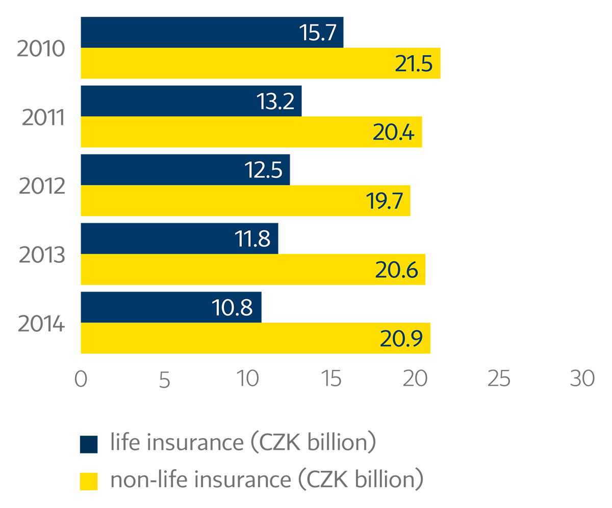 | – non-life insurance | CZK mil. | 10,358 | 11,320 | 10,431 | 11,353 | 12,749 |